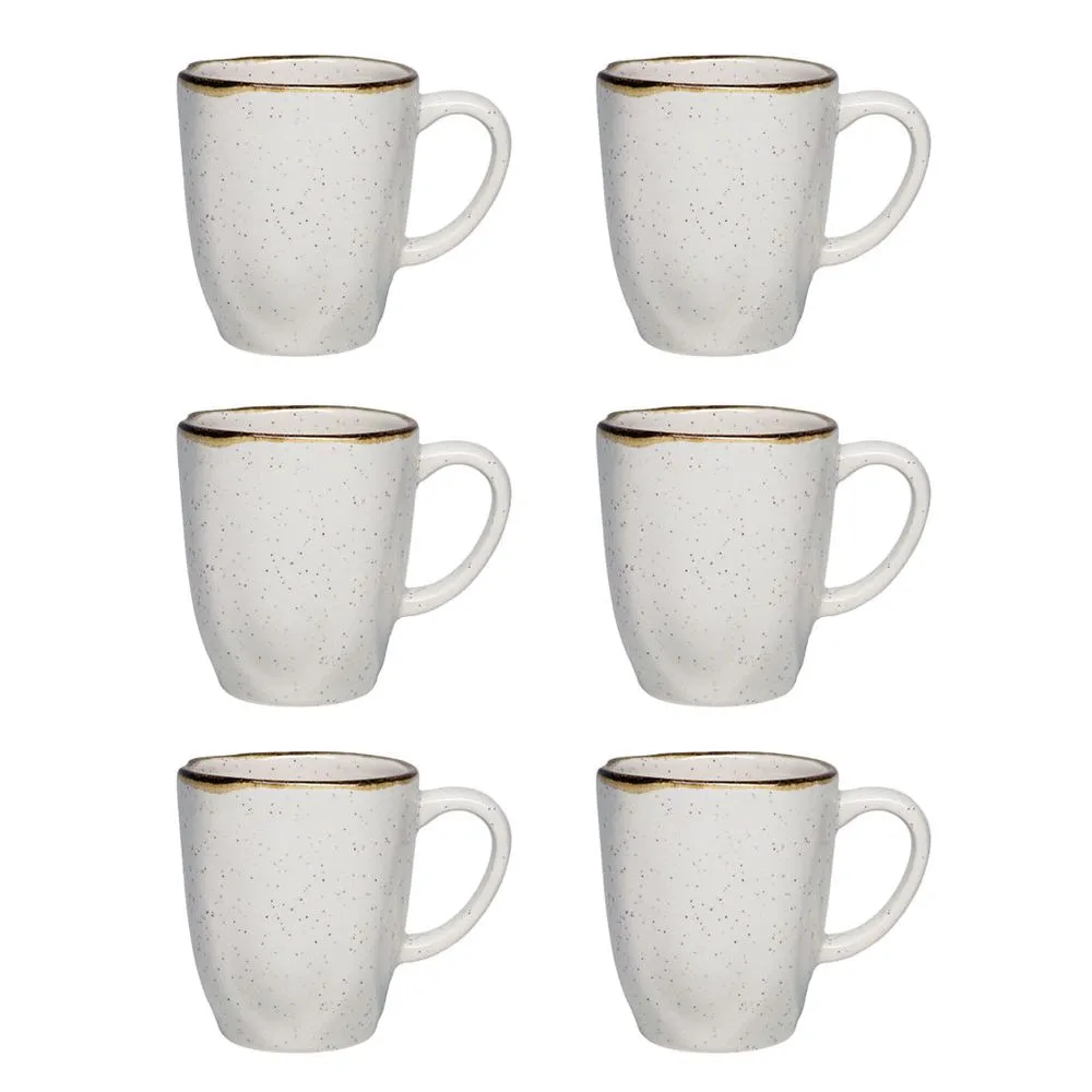 6 canecas com 9 cm de diâmetro, 11 cm de altura e 380 ml de capacidade