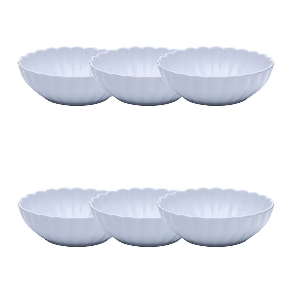 O azul Áster traz a suavidade das Candy Colors, levando leveza e um toque lúdico para a mesa posta. Os pratos fundos do conjunto têm abas altas com 6.4 cm de altura e capacidade para 1L.