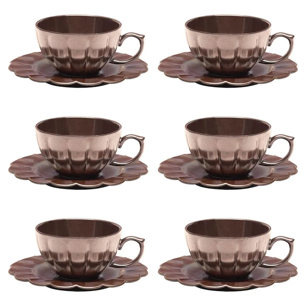 A vez domarrom! Inspirados pela cor do ano, Mocha Mousse, criamos a decoração Anis. A tonalidade remete ao aconchego do lar, enquanto o acabamento metalizado oferece uma pitada de modernidade à linha. As xícaras de chá possuem capacidade para 200 ml, perfeitas para chás e cafés.